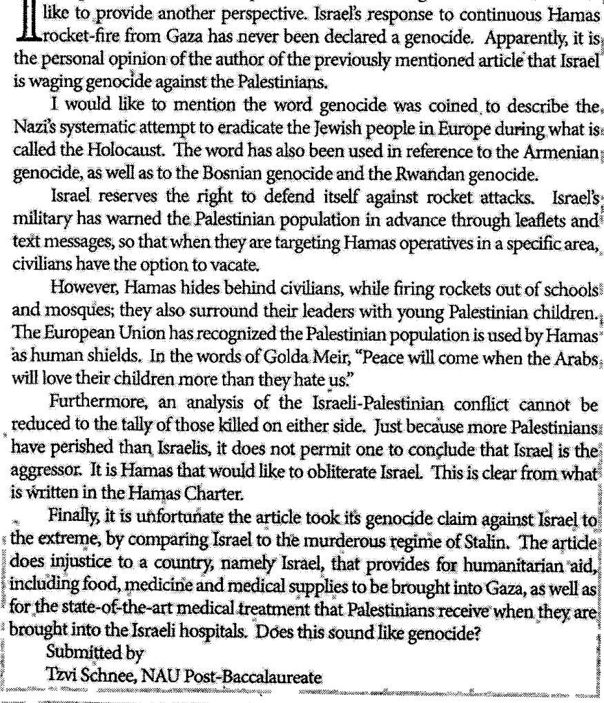 Claims of genocide in Gaza? I addressed this lie, about a decade ago, in a letter-to-the-editor at a campus newspaper, wherein an OpEd writer made the claim: