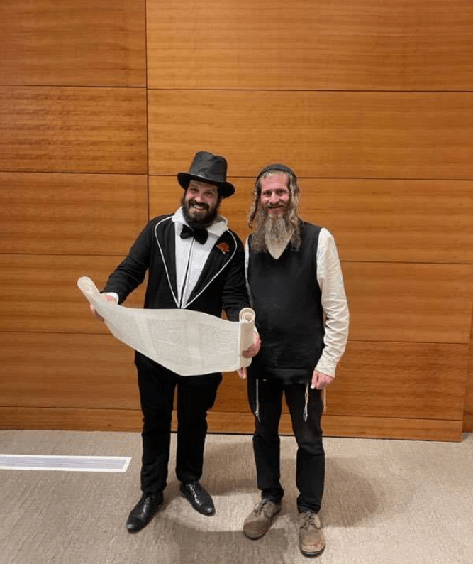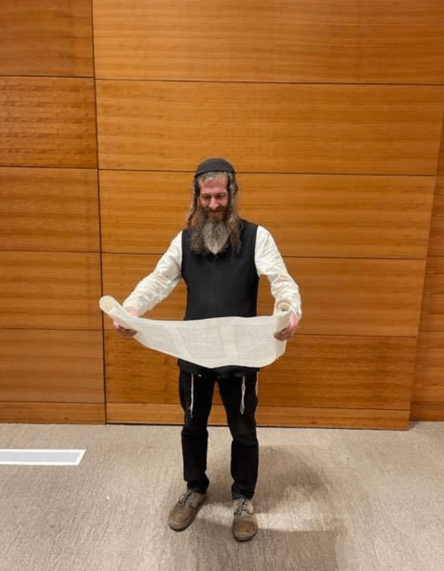 Me, Tzvi Fievel with the whole megillah scroll of the Book of Esther.